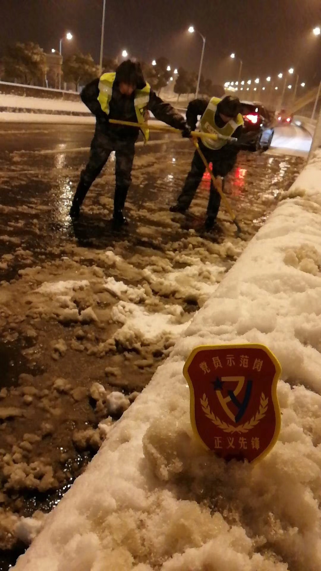 1月25日,昆山迎來2018年首場大雪,為減少降雪對公共交通帶來的不利影響,保安公司黨支部32名黨員積極響應公司號召,主動靠前,堅守一線,積極開展除冰雪保暢通工作。