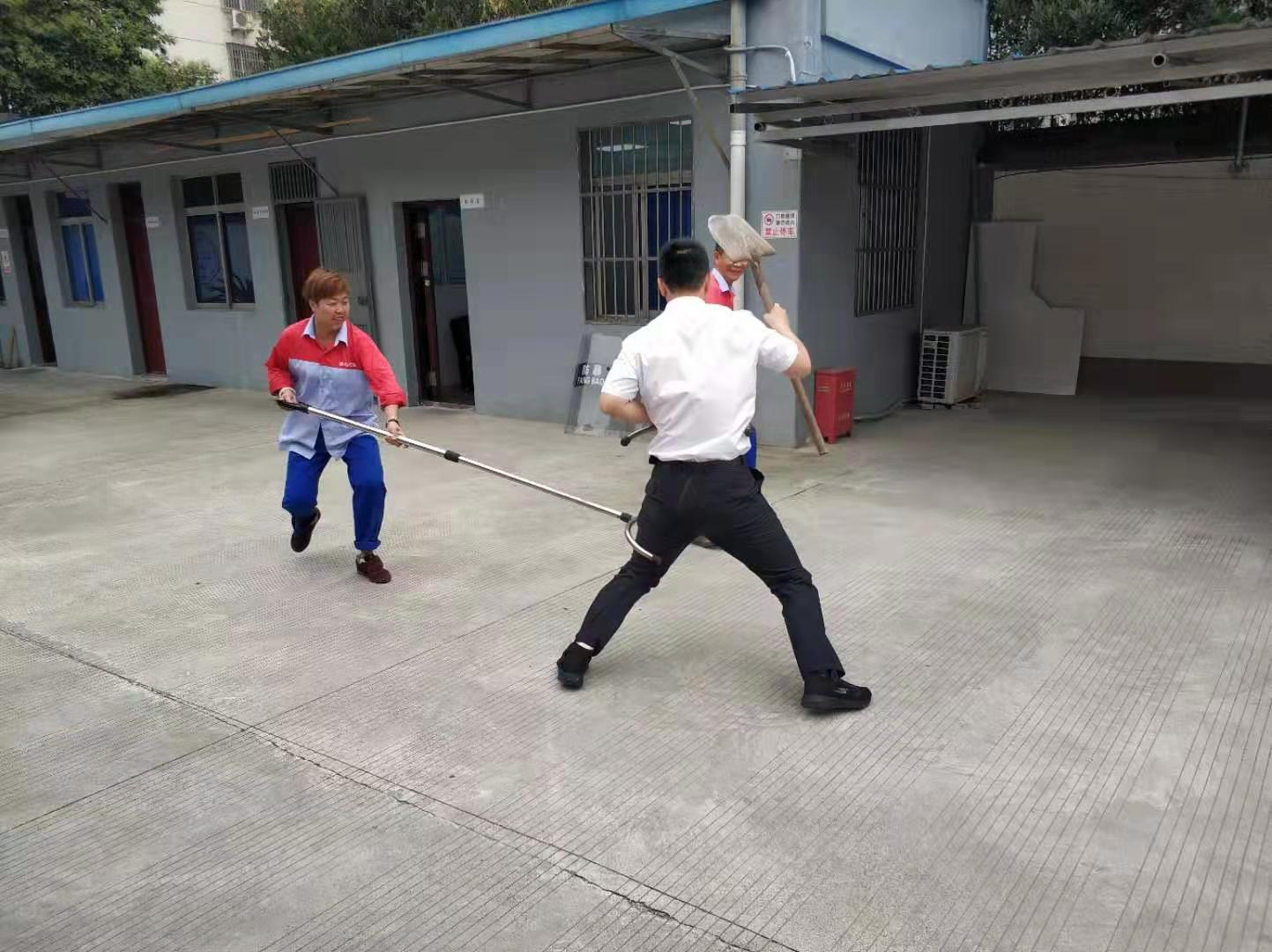 培訓通過理論結合實操的方式對防恐應急處置流程和加油站消防設施及防恐器材的使用方法進行系統學習,通過講解演示,幫助加油站工作人員掌握各項技能。為了進一步加深培訓印象,公司安全員模擬歹徒持燃燒瓶縱火的情景,加油站工作人員根據應急預案,第一時間切斷加油機油路,并就近取得滅火器進行火災撲救,其他工作人員利用防暴鋼叉合力將歹徒制服。