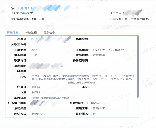 1月4日下午,安保公司下屬駐中醫醫院保安隊收到了一個特殊的工單。當日下午,馬女士在中醫醫院急診外科就診時,駐中醫醫院安保隊員金華平等人發現其腿腳不便,此時正值醫院人員來往密集,給就醫患者造成擁堵,為防安全事故發生,保安員金華平立即上前為其提供了悉心幫助,從掛號、就診到取藥,保安員金華平全程攙扶馬女士并細心詢問有無不舒服等情況,其熱心的服務態度讓人感動。