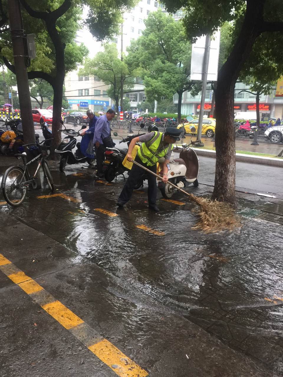 原來,由于十月上旬長時間的陰雨天氣,很多老舊路面出現(xiàn)了嚴重積水現(xiàn)象,影響了市民非機動車的管理停放,公司非機動車管理員顧明聯(lián)見狀,借來掃帚,挽起褲腿,清掃起了路面積水。這一幕恰巧被當時路過的市民拍了下來,引來了一片贊揚。