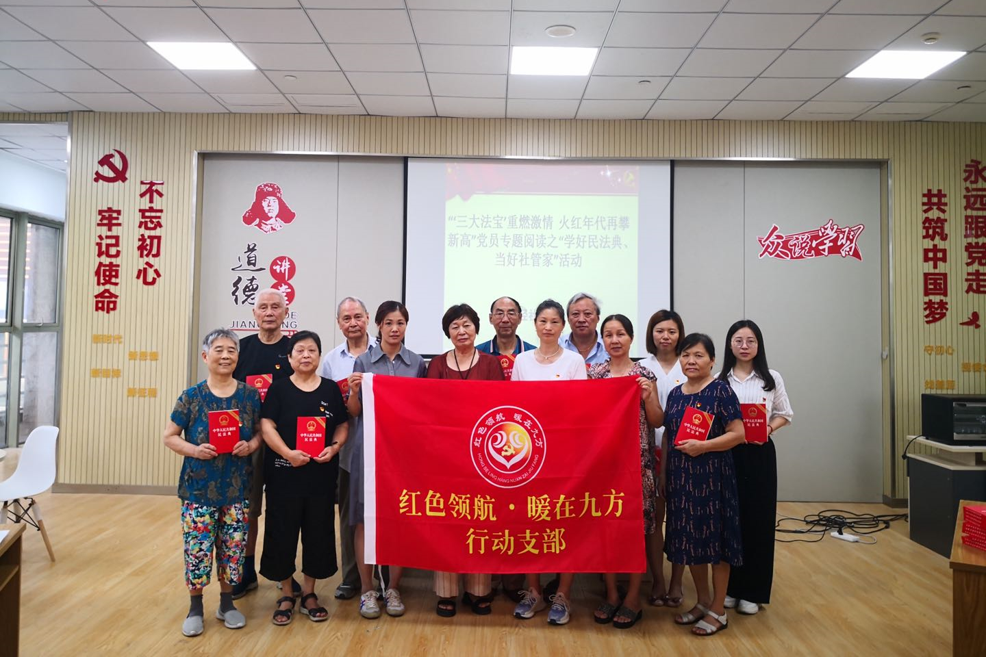 本次活動以學習“三大法寶”精神為主題,以重燃激情,再攀新高為目標。在活動中,黨員通過分享閱讀經歷、個人感悟、書籍意義,將自己閱讀過的書籍介紹給大家。部分黨員推薦的《全面從嚴治黨故事匯》和《做一個政治上的明白人——提升黨員干部政治能力》,收到熱烈反響?;顒幼詈螅蕚}涇社區黃虹書記向所有黨員贈送書籍《中華人民共和國民法典》,積極普及宣傳《民法典》精神,促進黨員認知提升。