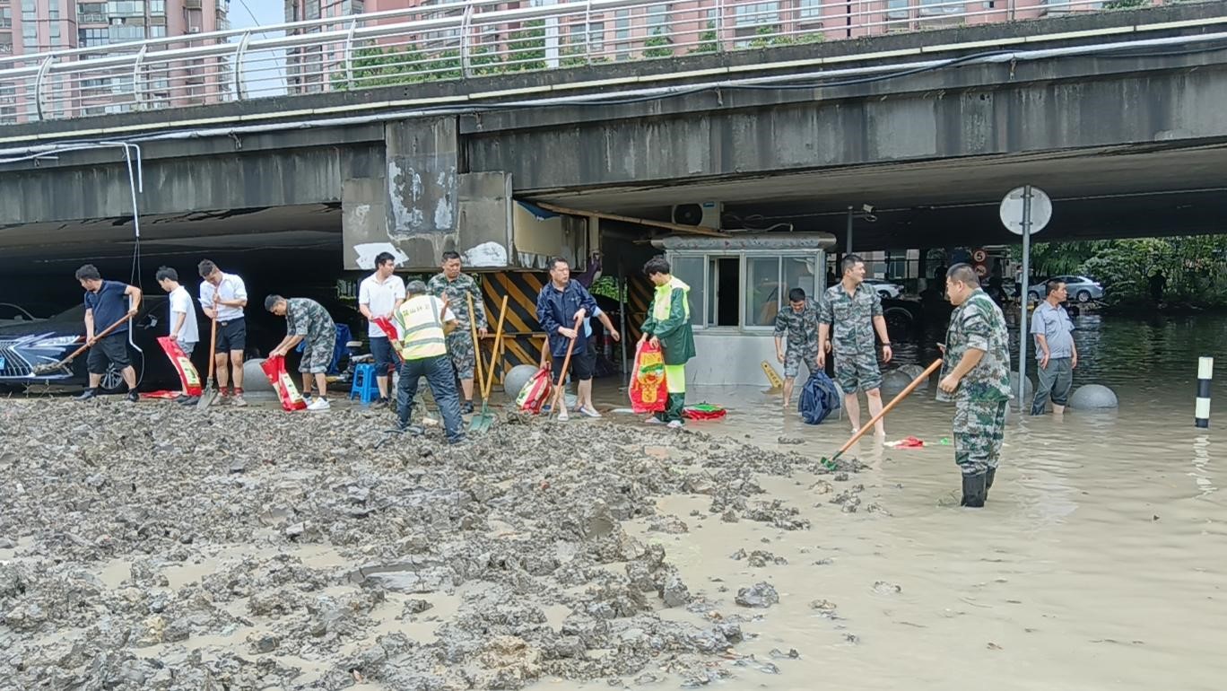 2023年7月20日,昆山市防汛防旱指揮部發布《關于啟動防汛IV級應急響應的通知(昆防傳〔2023〕2號)》,安保公司下屬保安支部迅速反應,為群眾撐起“汛期保護傘”。保安支部書記錢剛帶領黨員干部奮戰一線,黨員干部們巡查排險、輸通下水道、清理倒伏樹木,對居住在積水區、深水區的群眾做好引導勸離工作,對沉積路段和區域進行及時清理。