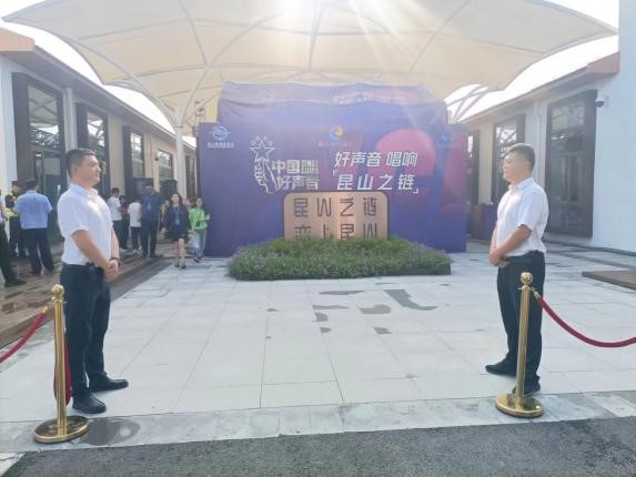 2023年8月18日,安保公司下屬保安公司承接了錦溪顧家浜中國好聲音(昆山之鏈)安保活動,本次活動保安公司出動了42名精通安保賽事的安保人員,其中公司主要負責人、業務負責人等骨干全員到位,為保障此次活動順利開展,保安公司制定活動專項方案,設組劃區確保活動現場的秩序安全。