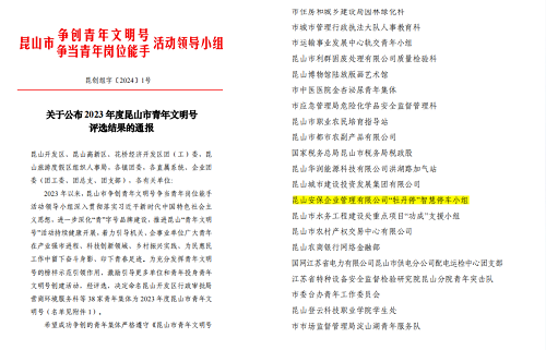 近日,昆山團(tuán)市委下發(fā)《關(guān)于公布2023年度昆山市青年文明號評選結(jié)果的通報(bào)》,安保公司“牡丹停”智慧停車小組榜上有名。